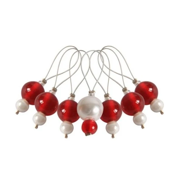Saat 6 kaunista ommelmerkkiä punaisena ja valkoisena sekä 1 ainutlaatuisen ommelmerkin suurella punaisella helmillä.