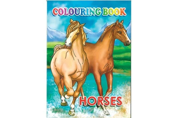 Kaunis värityskirja lapsille erilaisilla hevosaiheilla.