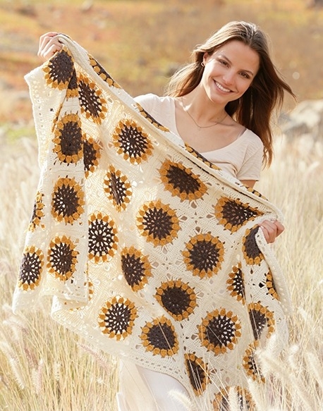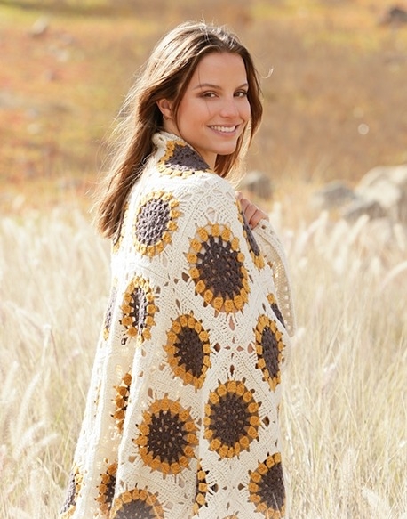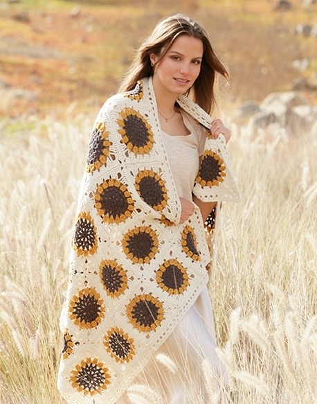 Jos haluat heittäytyä mattoon, jossa on laastareita, niin tämä suloinen auringonkukkamatto on todella hyvä vaihtoehto. Täällä on myös mahdollista muuttaa kukan väriä suosikkikukasi mukaan. Matto sopii mainiosti sekä sohvalle, sillä se on virkattu lämpimästä Drops Limasta, joka on villan ja alpakan villan yhdistelmä. Matto virkataan virkkaamalla ensin pyöreä kukka ja sitten reunus kukan ympärille. Hienot lasit kiinnitetään ompelemalla ne yhteen ja virkkaamalla lopuksi reuna, joka sitoo ne yhteen.